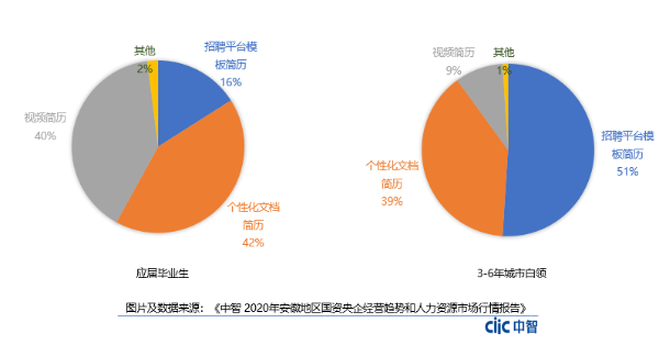 中智招聘專家分析,作為接受新鮮事物接受者較快的95年-98年畢業生(2020屆畢業生),他們在個人的“形象”方面,更多的選擇借助立體的形式展示自己,不會掩飾是他們的風采,這樣的呈現方式也提升了HR的招聘工作效率。相反,3-6年的城市白領在投遞簡歷方面,相比較偏向“保守”。